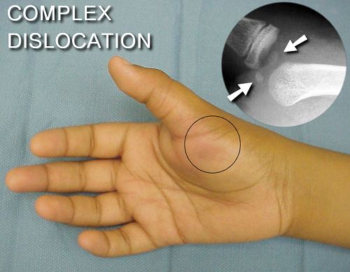 the thumb, and occasionally a dimple or bruising at the palmar metacarpal