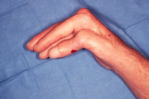 and extension contractures of the interphalangeal joints, all evident in