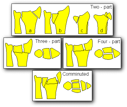 Fig. 11. Intra-articular distal radius fractures. Counting the number of articular fragments is the simplest of many classifications schemes for these injuries.