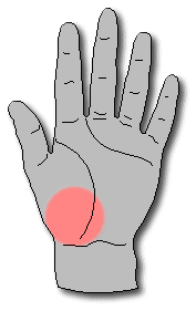 The appearance of the base of the thumb may