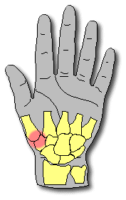 the thumb is removed. This bone has joint connections to three other bones
