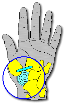 making a connection between the adjacent sides of the base of the thumb