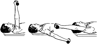 on your back, hold the weight up toward the ceiling. Lower down to your