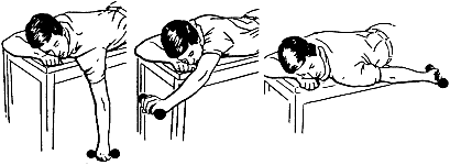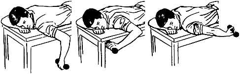 on a table with your arm hanging down freely, raise the weight overhead,