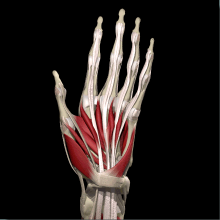 Function: flexes the middle finger MCP joint and extends the PIP and DIP joints