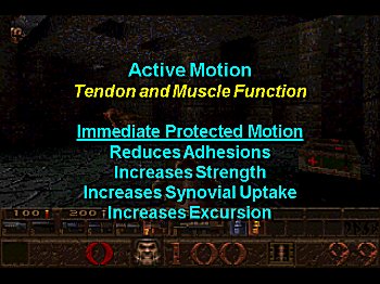 Early motion is not simply joint maintenance. It actually stimulates more physiologic healing of the gliding surfaces of tendons and joints, preserves tissue elasticity, tones the involved muscles and improves final range of motion compared to immobilization. |