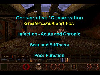 Conservation may prevent iatrogenic complications, but with greater risk of problems from the injury itself.