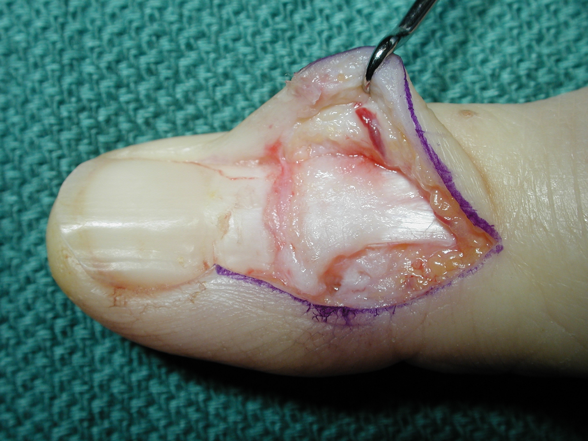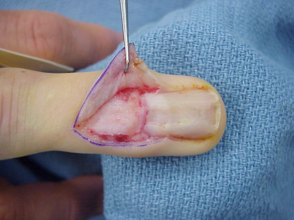 - Close the deep eponychial surface with a pullout suture and then close with a simple running suture.