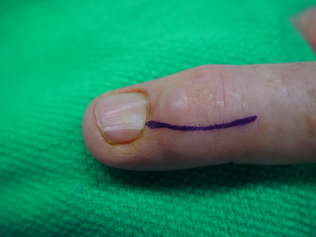 splitting incision I learned from Damien Ireland. Mucous cysts arise from the dorsal DIP joint capsule, often associated with small dorsal osteophytes of the distal phalanx. The cyst itself is a secondary effect and needs no treatment.